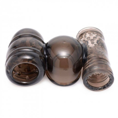 One stroker features a closed cup to target the head of the penis for pleasure, lined with soft tendrils to tickle and tease. The other stroker is open-ended to pleasure the entire shaft, lined with stimulating nubs for an unbearably intense massage with every thrust.